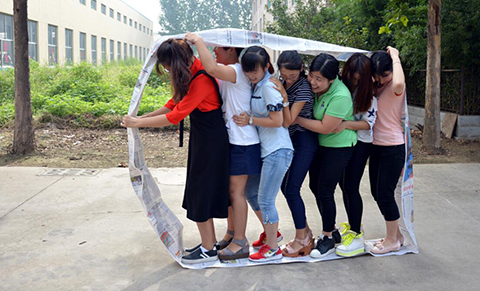 游戲簡(jiǎn)單易行,將多份報(bào)紙適當(dāng)裁剪,粘成大紙環(huán),員工分為兩隊(duì),每隊(duì)員工進(jìn)入大紙環(huán)內(nèi),踩踏紙環(huán),循序漸進(jìn)。以紙環(huán)完整, 先到達(dá)終點(diǎn)的一隊(duì)為獲勝方。游戲中充分體現(xiàn)出團(tuán)隊(duì)協(xié)作,互幫互助,團(tuán)結(jié)共進(jìn)的重要性。