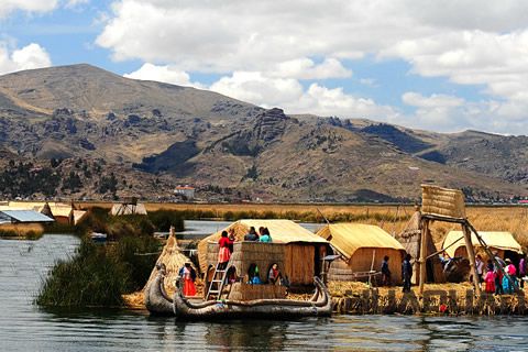 烏魯斯人是印第安阿依馬拉族的一支,早期為了躲避印加帝國等的侵?jǐn)_而逃到湖中。他們擇“蘆”而居,吃蘆筍,用蘆葦造船,還用蘆葦根造出了巨大的浮島。在島上,烏魯斯人快樂地生活著,他們用蘆葦建房子,并制造出各式各樣的生活必需品。今天,仍有數(shù)百人居住在這些漂流島上。的一個(gè)漂流島上還建有學(xué)校、郵局和商店。