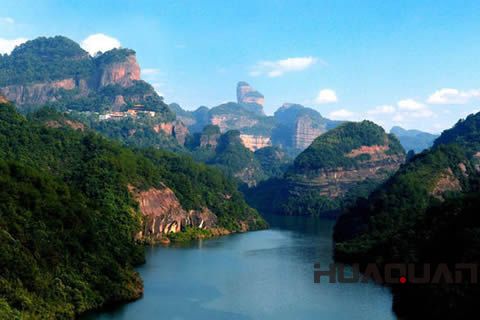 位于仁化縣城南9公里的丹霞山,被譽(yù)為“嶺南 奇山”。此山以赤色丹霞為特色,風(fēng)光秀麗,景色宜人,與南海羅浮山、博羅羅浮山、肇慶鼎湖山等并稱“廣東四大名山”。1928年,馮景蘭(注:地質(zhì)教育家、地貌學(xué)家)等就是在丹霞山這里發(fā)現(xiàn)了丹霞地貌,并把形成丹霞地貌的紅色砂礫巖層命名為丹霞層,由此,丹霞山就成了世界“丹霞地貌”命名地。以丹霞山為中心設(shè)立的“丹霞山世界地質(zhì)公園”,面積達(dá)319平方公里,2004年經(jīng)聯(lián)合國教科文組織批準(zhǔn)為中國首批世界地質(zhì)公園之一。此外,仁化縣還存留著大批人文景觀,如雙峰寨、云龍寺塔、文明峰塔與華表峰塔等。紅扣黑山羊、烤黑山羊腿、丹霞臭豆豉魚、四螺香煲、船家包大蝦、益母草煎蛋等是深受人們喜愛的仁化當(dāng)?shù)靥禺a(chǎn)。