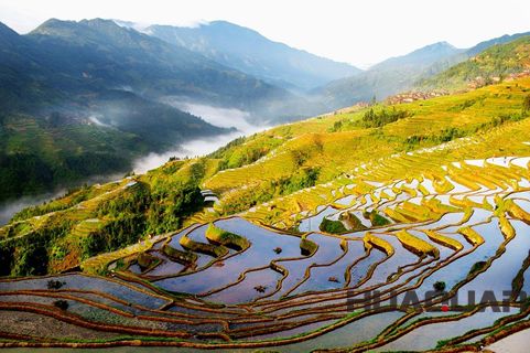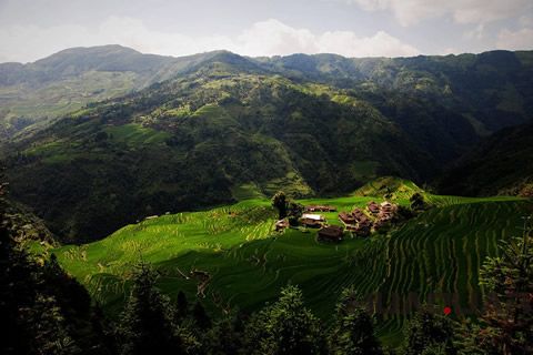 還有那美輪美奐的加榜梯田,有著“農(nóng)耕文化博物館”之譽,堪稱“人間絕境”。加榜梯田位于從江縣西部的月亮山腹地,是中國梯田之一。獨具苗鄉(xiāng)特色的吊腳樓均勻散落于近萬畝的梯田之上,猶如銀河中閃爍的繁星。加之梯田緊靠加車河,雨水充沛,每天清晨,一層層云霧便從河邊緩緩升起,慢慢的將梯田連同吊腳樓一起籠罩,如此盛景,保證會讓你在陶醉之余生起一種身處幻境的錯覺。在以各種方式評選的中國 美梯田中,無論是10大、 9大,還是5大、4大,加榜梯田總會占據(jù)其中一席。