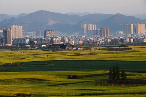 而且,與別的地方所不同,羅平的油菜花是當(dāng)?shù)剞r(nóng)民自發(fā)依山而種。按照季節(jié)的呼喚和土地的形態(tài),農(nóng)人們以質(zhì)樸的方式種下油菜花,讓它們漫山遍野、鋪天蓋地生長(zhǎng),造就了一片片自然天成的花海景觀。G324、南昆鐵路從花海中橫貫而過(guò),不時(shí)有那勤勞的養(yǎng)蜂人聚在花海之中,放蜂追花采蜜。登山遠(yuǎn)眺,玉帶湖、臘山湖、灣子湖如同三面明鏡,鑲嵌在浩瀚的花海中。油菜花海里,村落點(diǎn)點(diǎn)、寨子棋布,還有那牛街石巖溶洼地,則呈現(xiàn)出另一派精妙別致的“千丘田”田園風(fēng)光。