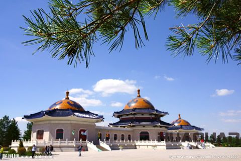 在伊金霍洛旗, 為知名的當(dāng)然就是“一代天驕”成吉思汗的陵墓了。“成陵”坐落于該旗境內(nèi)的甘德爾敖包上,總面枳約5萬平方米,主要分為圍墻、廣場、陵寢三個部分。而陵寢則由正殿、東殿、西殿和后殿組成,四殿相互連接,殿頂成圓形,房檐均為金黃色、藍色琉璃瓦鑲嵌砌筑,顯得格外輝煌壯觀。