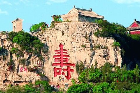 說起云門山,山雖不高(海拔421米),但平原拔笏,松蔭蓋足,有千仞之勢,在山東乃至全國享有盛譽。主峰大云頂,有洞如門,高闊過丈,南北相通,遠望如明鏡高懸。夏秋季節(jié),常有云霧穿門而出,故名“云門”……因山坐落在青州城南,故又稱“南山”。值得一提的是,山上有一個巨大的“壽”字,人稱為“云門獻壽”。據(jù)華全發(fā)電機組了解,此巨“壽”是明嘉靖年間衡王府管家周全為給衡王朱厚矯(時住青州)祝壽而請人鐫刻的,“壽”高7.5米,寬3.7米,字體結(jié)構(gòu)嚴謹,端莊大方,坐南朝北,人稱“天下 壽”。這個“壽”字如此之大,以至于人們常用“人無寸高”來形容。僅“壽”中的“寸”就有2.3米高,如果一個成年人攀上去,腳蹬“寸”勾,他的頭部也到不了“寸”頂。