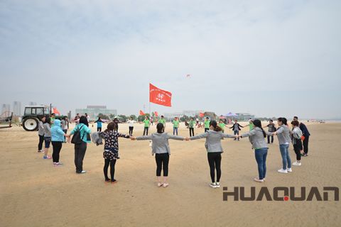 不知是誰,將那面、、 紅的華全旗插在了沙灘的中央,很是顯眼。華全的少男少女們立刻歡呼著,簇擁著,用身體擺成了一個大大的心形圖案。紅的紅、綠的綠、白的白,相信即便是 能干的調色師也調不出這樣絕妙的顏色?