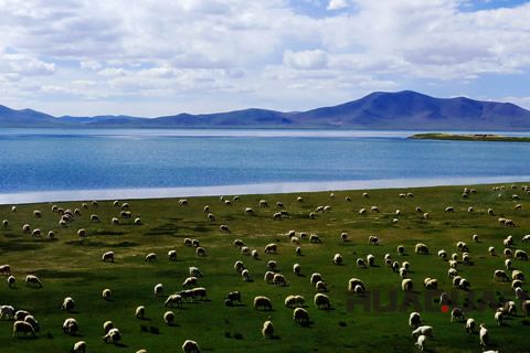 世界的淡水湖--錯(cuò)那湖畔的成群牛羊