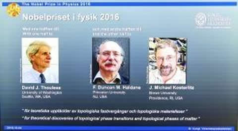 瑞典皇家科學(xué)院10月4日宣布,將2016年諾貝爾物理學(xué)獎授予大衛(wèi)•索利斯(David J Thouless)、鄧肯•霍爾丹(F Duncan
