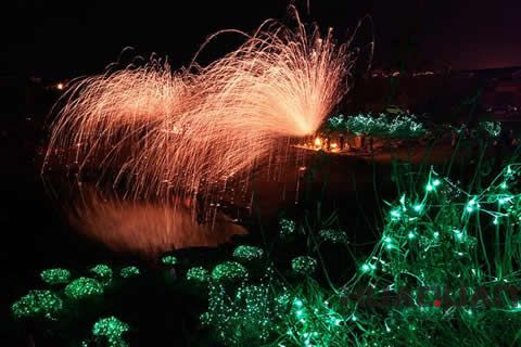 據(jù)考證,“打鐵花”至今已有千余年歷史,其中蘊(yùn)涵著中華民族發(fā)展史上冶鐵文化、道教文化、民間工匠文化、祭祀文化、社會(huì)文化、節(jié)慶文化等大量古代文化成果和元素。“打鐵花”是巴公鎮(zhèn)來(lái)村的一項(xiàng)傳統(tǒng)表演項(xiàng)目,用熔爐將鐵熔化成鐵水,然后灑向空中,鐵水拋上空中時(shí)形成美麗的“焰火”,就像天女散花,散落地上時(shí),就像潑金撒銀一般。