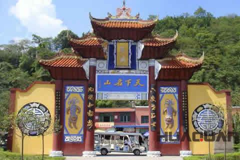 名山雖不高,卻也是古木參天,怪石林立,樓臺亭榭錯落有致;廟宇殿堂巧奪天工…… 為神奇的是天子殿,那陰森森的殿中央,身高6米的天子爺赫然高坐,神目如電,左右朝臣俯首聽命,謙恭有加;座前四大判官或捧生死簿,或握勾魂索,秉公執(zhí)法,懲惡揚善。堂下十大陰帥,威風(fēng)凜凜對排肅立,殿兩旁的東西地獄是陰曹地府的行刑場所,上刀山、下火海、甑子蒸、油鍋炸、磨子推、鋸子鋸、車馬裂、狼狗吃等種種酷刑,令人慘不忍睹,毛骨聳然。
