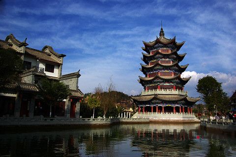 彝人古鎮(zhèn),位于楚雄市區(qū)西部,瀕臨龍川江,它是在宋代“德江城”遺址附近興建的一個集彝族民居展示、旅游為一體的文化名鎮(zhèn)。主要有望江樓、桃花溪、德運廣場、古戲臺、火把廣場、彝人部落、土司府等等景點。在這里,不僅能感受彝族風(fēng)情、文化,還可以欣賞精彩的舞蹈,以及各種娛樂活動。其中,由彝人部落安排的“天天長街宴、夜夜火把節(jié)”活動,原始、粗獷、原生態(tài),特色鮮明,是古鎮(zhèn)為讓游客體驗彝家風(fēng)情而獻上的一道文化大餐!