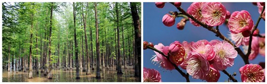 1983年,武漢市開展市樹、市花評(píng)選工作。水杉憑借“活化石”和“古老的世界之爺”的美譽(yù)被評(píng)為市樹;梅花被評(píng)為市花。梅花屬薔薇科落葉小喬木,其枝條上有退化小枝,呈針刺狀,幼枝綠色,有時(shí)背面呈紅色;葉廣卵形,葉柄短;花瓣及花萼為圓形,五枚一團(tuán)?;ㄓ屑t、白、黃等色,清麗芬芳,于深冬開放,經(jīng)月余至初春凋謝。千百年來(lái)松、竹、梅被稱為“歲寒三友”,為世所頌。