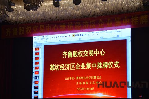 11月28日,風和日麗,暖風習習,齊魯股權(quán)交易中心山東省濰坊經(jīng)濟技術(shù)開發(fā)區(qū)企業(yè)集中掛牌儀式在濰坊新富佳悅大酒店會議中心成功舉行。儀式上,包括濰坊華全電力有限公司(股權(quán)簡稱:華全動力,股權(quán)代碼171006,掛牌價8.10元)在內(nèi),來自開發(fā)區(qū)內(nèi)的27家企業(yè)成功登陸齊魯股權(quán)資本市場。