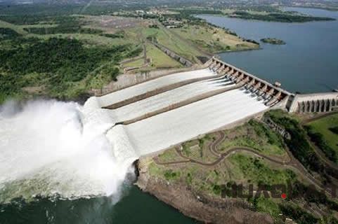 伊泰普大壩建在流經(jīng)巴西和巴拉圭兩國(guó)交界的巴拉那河上,全長(zhǎng)7744米,高196米。自上世紀(jì)70年代兩次電力能源危機(jī)后,巴西政府決定同巴拉圭政府聯(lián)合建造當(dāng)時(shí)世界上的水電站。大壩于1975年10月開始建造,直到1982年才竣工,共耗資200億美元。大壩壩后的水庫沿河延伸達(dá)161千米,形成深250米、面積達(dá)1350平方公里、總蓄水量為290億立方米的人工湖。自1990年改進(jìn)以后,伊泰普水電站18臺(tái)水輪機(jī)組發(fā)電量高達(dá)1260萬千瓦。