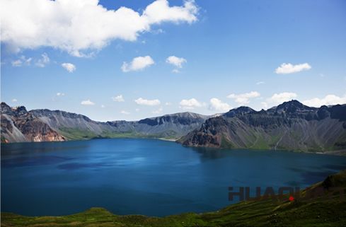 天池的面積約10平方千米,湖面呈橢圓形,長(zhǎng)4.85千米,寬3.35千米,圍繞一周大約13千米。從空中俯瞰天池,猶如是鑲在群峰之中的一塊碧玉。關(guān)于長(zhǎng)白山天池,還有一個(gè)美麗的傳說(shuō)呢。據(jù)說(shuō),天池原本是太白金星的一面寶鏡。西王母有兩個(gè)女兒,長(zhǎng)得的相像,外人很難說(shuō)清楚姐妹倆究竟誰(shuí)更漂亮。在一次蟠桃盛會(huì)上,太白金星掏出寶鏡,說(shuō),“只要用它一照,就能看到誰(shuí)更美”。小女兒先接過(guò)鏡子,只照了一下便羞澀地遞給了姐姐。姐姐卻對(duì)著鏡子左顧右盼,越看越覺(jué)得自己漂亮。這時(shí),寶鏡說(shuō)話(huà)了:“我看,還是妹妹更漂亮。”姐姐大怒,當(dāng)即將寶鏡拋下瑤池,落到人間變成了天池……