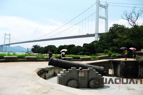 關(guān)于虎門(mén),還有一個(gè)美麗的傳說(shuō)呢。傳說(shuō)很久以前,南海龍王敖欽為了解救被蓮花山虎精掠走的小女兒亞娘,派出魚(yú)、蝦二將用神棍將老虎精打死。沒(méi)想到老虎是母的,且有孕在身,臨死之時(shí)竟然生下了一個(gè)老虎死胎。南海龍王不放心,怕它們死而復(fù)活,于是用一把金鎖將虎精與死胎鎖在珠江中。后來(lái),大小二虎變成了橫臥江中的兩座山島,恰似兩個(gè)衛(wèi)士在守門(mén),因而得名——虎門(mén)。