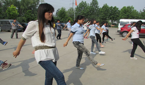 “這么多人一起做廣播體操,可不多見呀!”來辦事的李女士一進公司大門,就看到了這令她驚奇又備感親切的一幕。伴著那悠揚雄壯的音樂,幾十名華全員工齊刷刷聚集在樓前廣場,統(tǒng)一的著裝、標準的動作、優(yōu)雅的表情、自信的姿態(tài),在綠樹紅花的映襯下顯得如此婀娜而美好。尤其是節(jié)奏歡快時,“啪啪”的擊掌聲音聽起來很是響亮、悅耳。