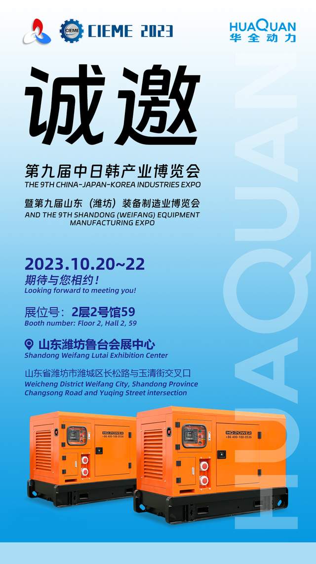 第九屆中日韓產(chǎn)業(yè)博覽會(huì)即將開(kāi)幕,山東華全動(dòng)力應(yīng)邀參加 2023-10-19