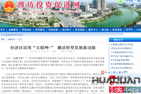 5月11日,山東省濰坊市合作發(fā)展促進(jìn)局旗下的門(mén)戶(hù)網(wǎng)站——濰坊投機(jī)促進(jìn)網(wǎng)以《經(jīng)濟(jì)區(qū)活用互聯(lián)網(wǎng)+ 激活轉(zhuǎn)型發(fā)展新動(dòng)能》未標(biāo)題,用較大